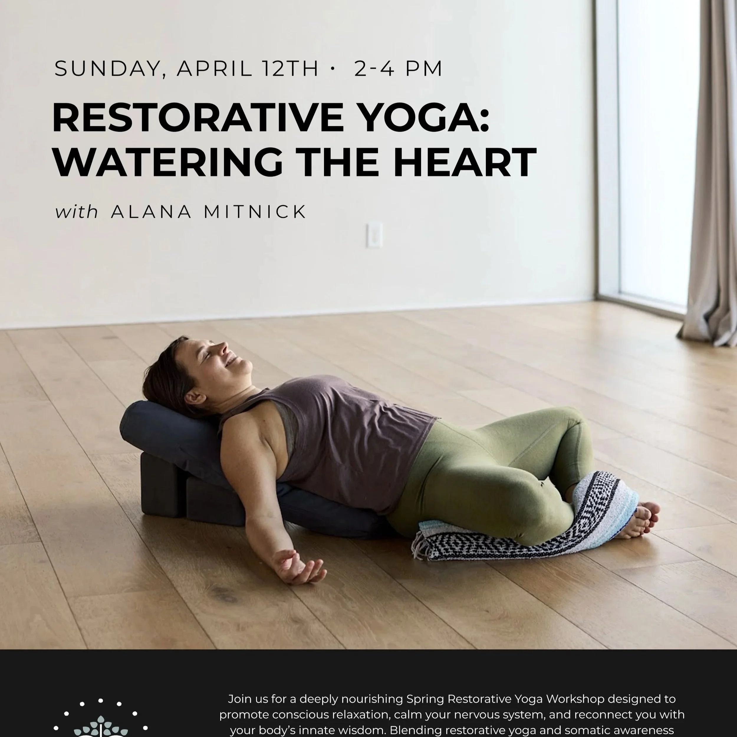 Join Alana Mitnick for a deeply nourishing Spring Restorative Yoga Workshop designed to promote conscious relaxation, calm your nervous system, and reconnect you with your body’s innate wisdom. Blending restorative yoga and somatic awareness practices, you’ll cultivate a sense of embodied presence and ease—deepening your relationship with yourself while fostering resilience from within. With the support of props, we’ll soften into long-held restorative postures, allowing the body to fully settle and receive. This spacious practice creates a container for rest, healing, and quiet introspection. Whether you are new to yoga or a seasoned practitioner, you are invited to pause, listen inward, and restore. You'll leave feeling grounded, rejuvenated, and more deeply attuned to your inner landscape.